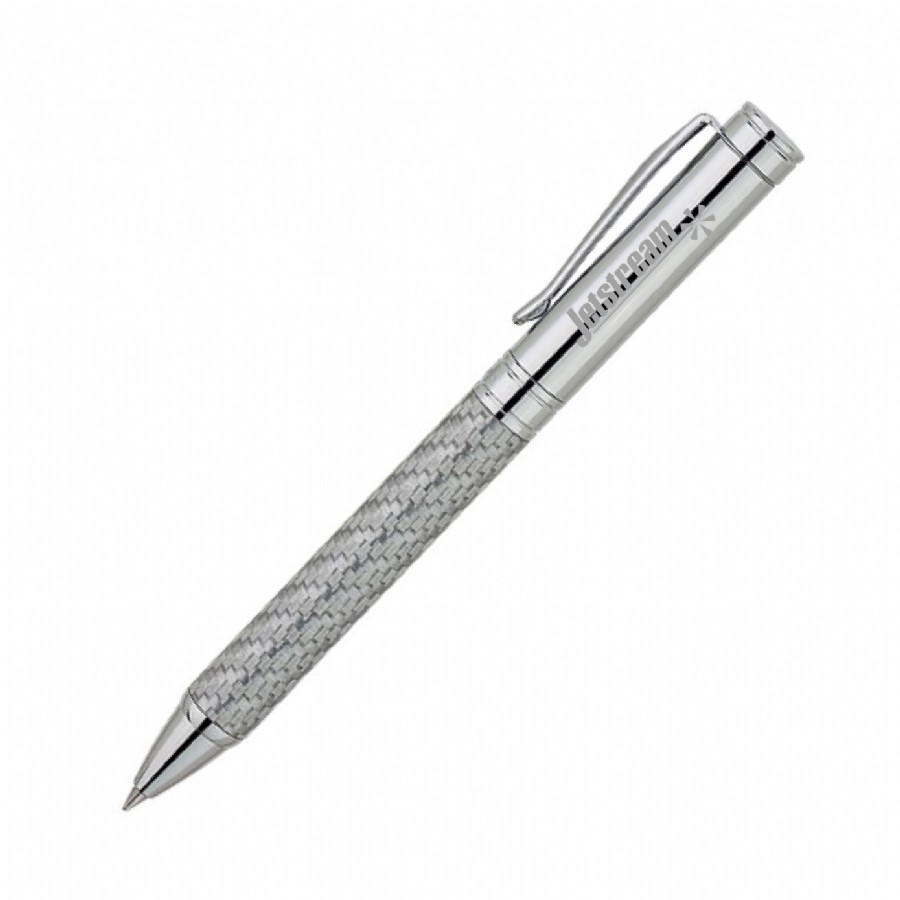 Twist mechanism brass ballpoint pen with silver glass fiber or black carbon fiber barrel and USA made ballpoint refill.